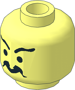 0 Minifig Head with Moustache Curly and Split, Long Wavy Eyebrows Pattern