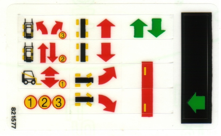 0 Sticker 0.8 x 1.8 with Forklift, Red Left and Right Curved Arrows and "3" in Yellow Circle