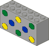 6213p02.dat - Brick 2 x 6 x 3 with Green Yellow and Blue Dots Pattern