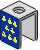 3846d07.dat - Minifig Shield Triangular w/ Yellow Trefoils on DkBlue Sticker