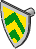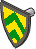 3846d06.dat - Minifig Shield Triangular with Green Chevrons on Yellow/LtGray