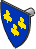3846d04.dat - Minifig Shield Triangular with Yellow Trefoils on Blue Sticker