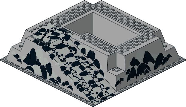 2552p05.dat - Baseplate 32 x 32 Raised with Ramp and Pit with Grey and Black Rocks Pattern