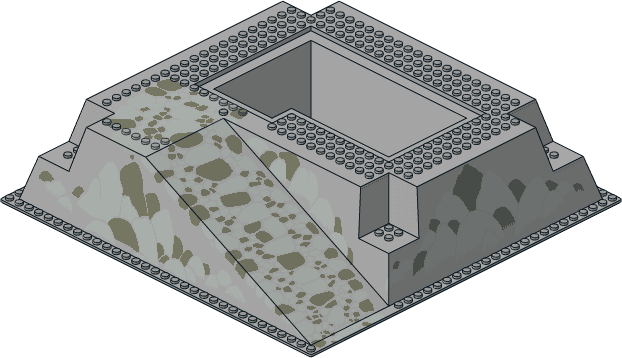 2552p06.dat - Baseplate 32 x 32 Raised with Ramp and Pit with Grey and DarkGrey Rocks Pattern