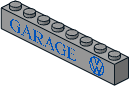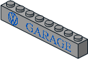 925p0e.dat - Brick 1 x 8 with VW Logo and "GARAGE" Normal Pattern