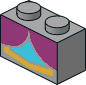 3004pza.dat - Brick 1 x 2 with 2 Magenta Quarter Ovals, Medium Azure Center and Metallic Gold Line Pattern