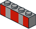 3010pzc.dat - Brick 1 x 4 with 3 Red Vertical Stripes Pattern