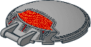 3960psc.dat - Dish 4 x 4 Inverted with Dark Bluish Grey Circle and Wide Black Trapezoid Panel with Light Bluish Grey Highlights Pattern