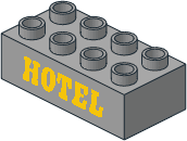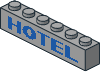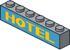 3067ap14.dat - Brick 1 x 6 without Centre Studs with Thick Yellow/Dark Azure "HOTEL" Pattern