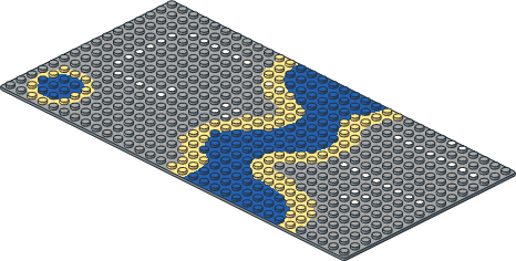 3857p02.dat - Baseplate 16 x 32 with Square Corners with River and Set 6071 Dots Pattern