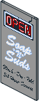 26603dx1.dat - Tile 2 x 3 with Black and White Minifig and Metal Blue Lipstick Sticker