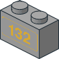 3004pt4.dat - Brick 1 x 2 with Metallic Gold "132" Pattern