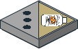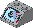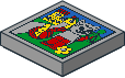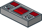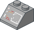3005pz2.dat - Brick 1 x 1 with Metallic Silver Boxes and 2 Red Dots on Black Background Pattern