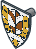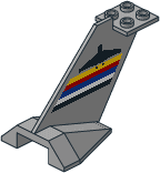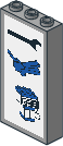 3010py6.dat - Brick 1 x 4 with Metallic Silver Crossed Stripes, Black and Blue Wing and White Triangle Pattern
