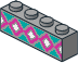 3010p0g.dat - Brick 1 x 4 with White Squares, Dark Turquoise Triangles and Dark Pink Lines Pattern