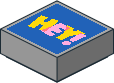 3070bp15.dat - Tile 1 x 1 with Bright Pink and Yellow "HEY!" on Blue Background Pattern