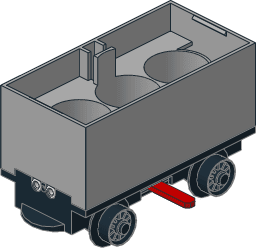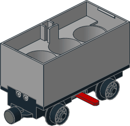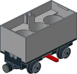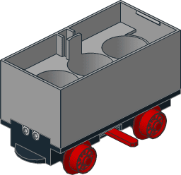3443ac03.dat - Train Battery Box Car with Two Contact Holes, Red Switch Lever and Black Wheels (Complete)