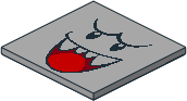 10202px0.dat - Tile 6 x 6 with Groove and Underside Studs with Black Eyes, Eyebrows, Open Mouth Evil Smile, Teeth and Red Tongue Pattern