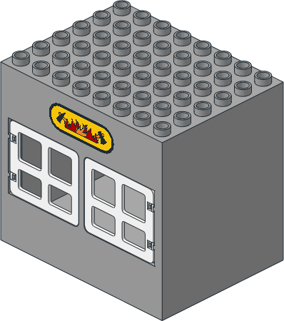 2207p01.dat - Duplo Building 6 x 8 x 6 with Front Windows with Firehouse Pattern