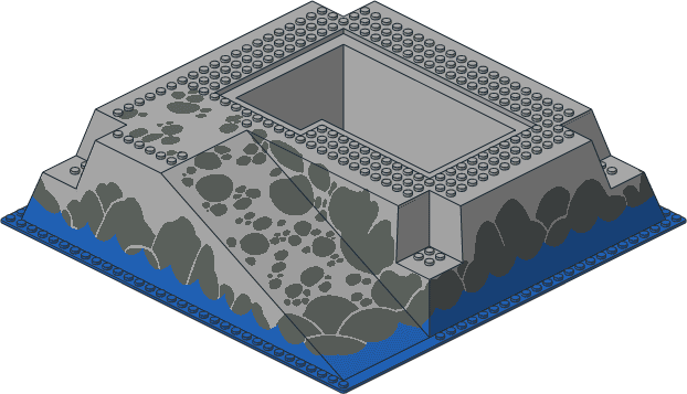 2552p03.dat - Baseplate 32 x 32 Raised with Ramp and Pit with Water and Dark Grey Stones Pattern