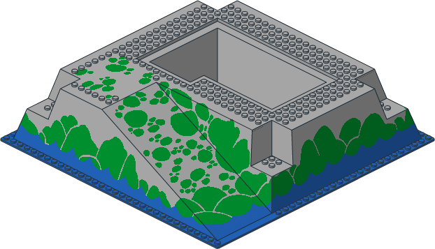 2552p04.dat - Baseplate 32 x 32 Raised with Ramp and Pit with Water and Green Stones Pattern