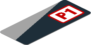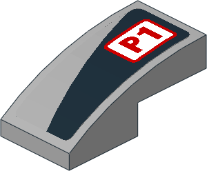 parts/6142275zc01.dat - Sticker 1.9 x 0.8 with Red "P1" and Grey Triangle on Black Background Right (Formed)