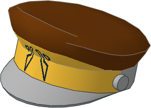 parts/12895p02.dat - Minifig Captains Hat with Golden Braid with Black Insignia and Reddish Brown Top Pattern