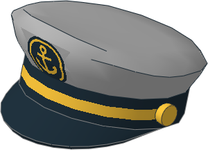 parts/12895p06.dat - Minifig Captains Hat with Black Visor, Gold Anchor and Narrow Braid Pattern