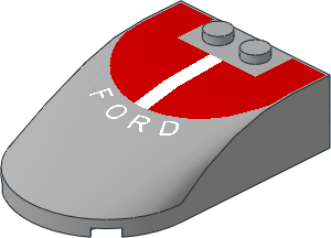 parts/18973p07.dat - Windscreen 6 x 4 x 1.333 Curved with "Ford" Text and White and Red Roof Pattern