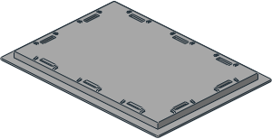 parts/74166.dat - Plate 8 x 16 x 0.667 with Rounded Corners, Cutouts and Recessed Studs