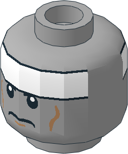 parts/3626cpb1.dat - Minifig Head with White Headband and Cheek Lines, Frown / Determined 2-Sided Pattern
