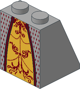 parts/3678bp41.dat - Slope Brick 65 2 x 2 x 2 with Centre Tube with Gold Skirt and Dark Red Trim Pattern