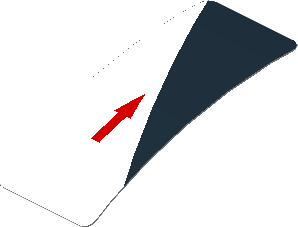 parts/11477dyc.dat - Slope Brick Curved 2 x 1 with Red Arrow and Black Triangle on White Background Right Sticker