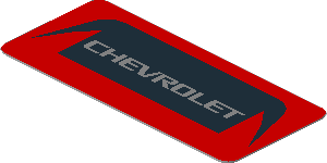 parts/6142617r.dat - Sticker 0.9 x 1.8 with Silver "Chevrolet" in Black Frame on Red Background