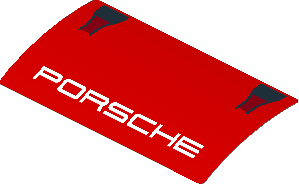 parts/6148328yc01.dat - Sticker 1.9 x 3.8 with Black Air Vents and White "PORSCHE" on Red Background (Formed) (Needs work)