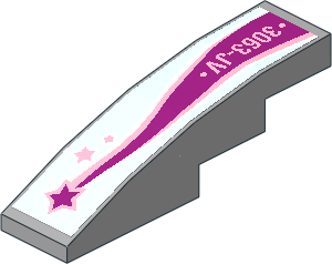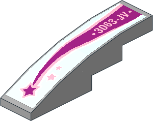 parts/61678d06.dat - Slope Brick Curved 4 x 1 with "3063-JV" and Magenta Shooting Star Left Sticker