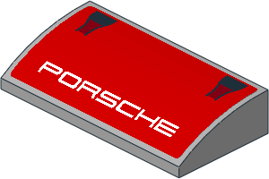 parts/88930dy2.dat - Slope Brick Curved 2 x 4 with Black Air Vents and White "PORSCHE" Text on Red Background Sticker