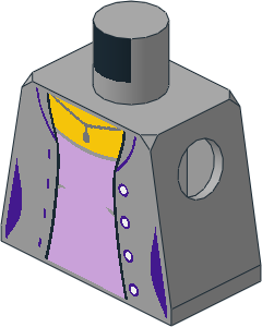 parts/973p0k.dat - Minifig Torso with Open Jacket, Metallic Silver Necklace and Lavender Shirt Pattern