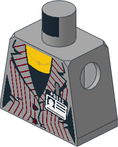 parts/973p0m.dat - Minifig Torso with Suit Jacket with Dark Red Pinstripes, Metallic Gold Necklace, Black Shirt and Press Badge Pattern