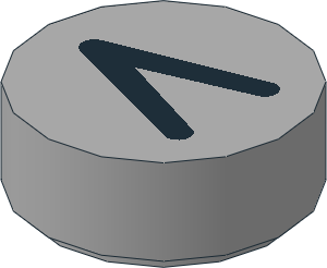 parts/98138p2o.dat - Tile 1 x 1 Round with Black "<" Pattern