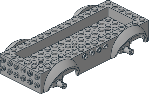 parts/18937.dat - Car Base 6 x 16 x 2 with 4 x 14 Recessed Centre with Mudguards and Fixed Axle Blocks
