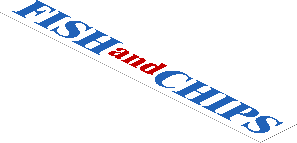 parts/190765e.dat - Sticker 1.1 x 7.9 with "FISH and CHIPS" on White Background