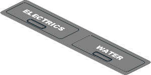 parts/4638848d.dat - Sticker 0.8 x 3 with Black Frame and Black and Dark Grey Grip with White "ELECTRICS" and "WATER"