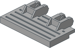 parts/65094p01.dat - Car Base 6 x 16 x 2.333 with 4 x 14 Recessed Centre with Mudguards and Dark Bluish Grey Fixed Axle Blocks Pattern
