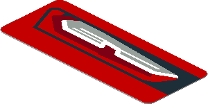 parts/170882a.dat - Sticker 0.9 x 3.6 Triangle with Black Outline and Red and Blue Filling (Tip Right)