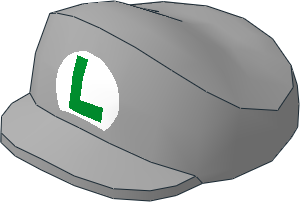 parts/77710p01.dat - Figure Cap on Brick 2 x 2 with Arched Bill with Luigi "L" in Oval Pattern