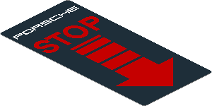 parts/6148328i.dat - Sticker 1.8 x 3.8 with Red "STOP" with Arrow on Black Background