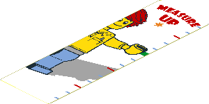 parts/6234010n.dat - Sticker 5.7 x 1.7 with Red "MEASURE UP", Height Lines and Operator with Shadow on White Background