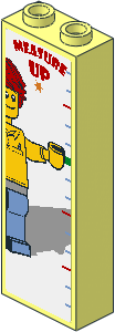 parts/2454bd04.dat - Brick 1 x 2 x 5 with Blocked Open Studs and Symmetric Inner Ridges with Red "MEASURE UP", Height Lines and Operator with Shadow on White Background Sticker