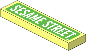 parts/2431p0c.dat - Tile 1 x 4 with White 'SESAME STREET' on Bright Green Background Pattern